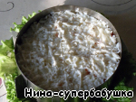Затем равномерно распределить рис и снова сеточка из майонеза.
