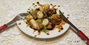 Очень утонченное и вкусное блюдо! Увидела его в Гонконге и была очень удивлена такой компоновкой продуктов. И еще больше, когда попробовала этот вкус! И ... бедный китайский повар!!!! Я мучила его расспросами и подробностями, что и как :) У блюда есть один недостаток, слишком дорого! Но не судите строго за это. Возможно, дорого, но для меня оно стало гастрономическим открытием! А открытиями принято делиться!