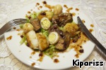Выкладываем на тарелки кусочки фуа-гры, гребешков и яйца, хорошо поливаем соусом!