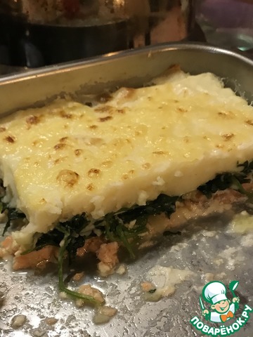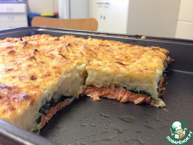 Рецепт «Картофельная запеканка с семгой и шпинатом»: