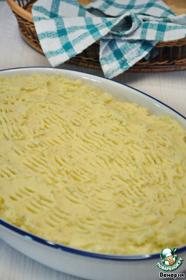 Сверху выложить слой воздушного пюре, разровнять пюре лопаткой.