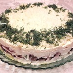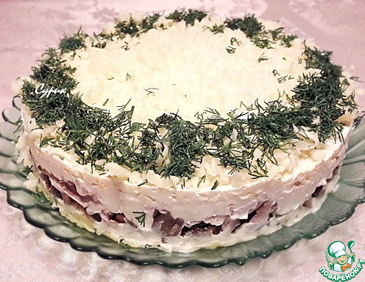 Очень вкусный салат, можно подавать на праздничный стол. За фото к рецепту спасибо Людмиле Сурик.