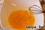 Молоко и сливки доведите до кипения и залейте этой смесью яйца. Хорошо размешайте.