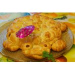 Оставить минут на 20 для расстойки, смазать яйцом и выпекать а прогретой до 180" духовке до золотисто-коричневого цвета минут 40. Ориентируйтесь на вашу духовку!