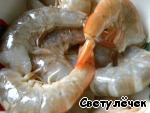 Креветки разморозить и очистить.