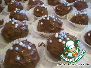 Украшаем. У меня были съедобные жемчужинки. Вот такие замечательные пироженки получились. Хранить в холодильнике. После холодильника они особенно вкусны! Приятного чаепития!