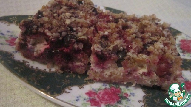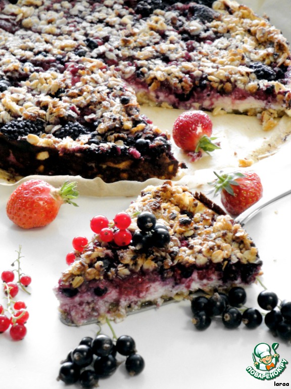 Этот пирог не только вкусный, но и полезный! В составе пирога нет муки, а вместо нее - смесь хлопьев 5 злаков, да еще и начинка из творога и красной смородины. Заходите и угощайтесь!