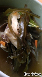 3. В суп добавляем мисо-пасту, овощи и морскую капусту. Солим по вкусу и кипятим на маленьком огне 30-40 минут.