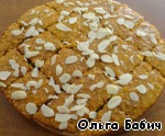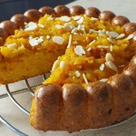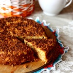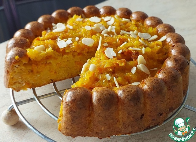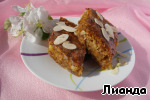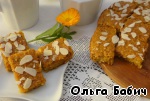 Остывший пирог вынуть из формы, нарезать на порционные кусочки, полить сиропом, присыпать миндалем. -