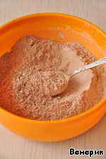 Смешать сухие ингредиенты: муку, разрыхлитель, соль, какао.