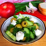 Рецепт «Огуречный салат с маслинами и перцем чили»: