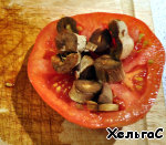 Также вместо шляпок грибов можно использовать помидор, предварительно вынув из него всю мякоть