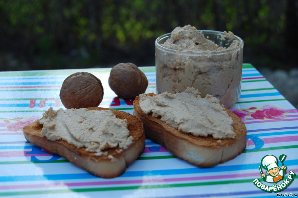 Обжаренный лук, яйца, орехи и чеснок помещаем в блендер, туда же добавляем соль, перец и взбиваем до однородного состояния. Готовый паштет выкладываем из блендера, добавляем, если считаем нужным, соль и перец и ставим в холодильник на час-два.