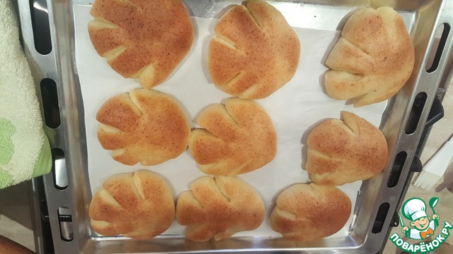Разделываем тесто на булочки, надрезаем, выкладываем на смазанный противень. (Я выстилаю пищевую бумагу, противень чистый, и булочки отлетают). Даем обязательно булочкам расстояться, как они только стали пышными, отправляем в разогретую духовку до 180 градусов. Готовим до румянца и следим, чтобы их не пересушить.