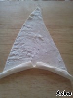 Тонко раскатываем тесто и нарезаем на треугольники.
