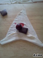 3. кладем внутрь начинку (1 кусочек шоколада, 1 ягода);