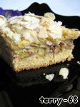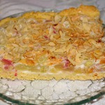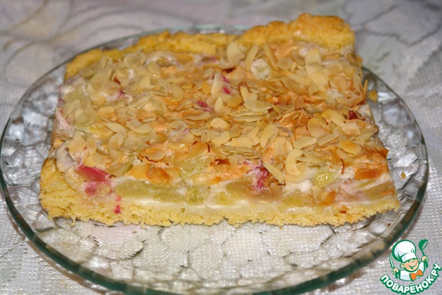 Распределяем ревеневую массу по тесту, разравниваем, верх посыпаем 50 гр. миндаля. Вот так.