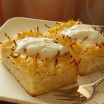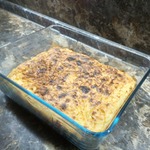 Выложить в смазанную маслом форму. Можно в круглую разъёмную форму, там запеканка получается как торт. Духовку разогреть до 180 градусов и запекать до золотистого цвета.