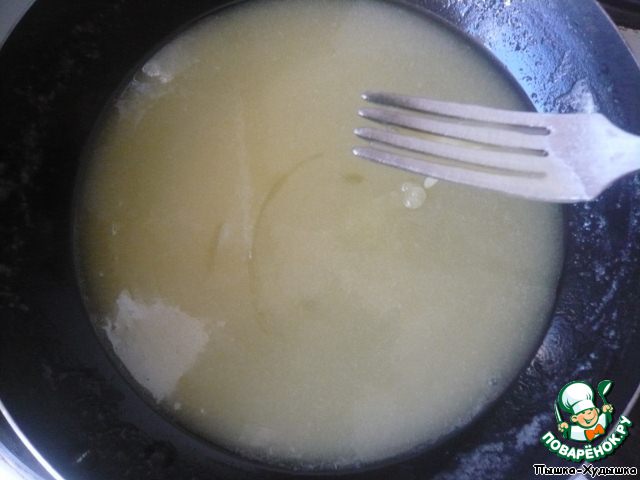 Растопить масло и добавить сахар. Перемешать.