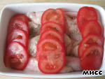 Сверху красиво укладываем нарезанные кольцами помидоры.