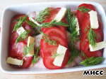 Нарезаем сверху кусочками сливочное масло, укладываем веточки укропа.