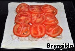 Тонюсенькими пластинками нарезала шампиньоны и выложила на тесто, посолила и сбрызнула оливковым маслом.