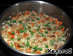 Подождем, пока рис будет аль денте и впитает весь соус, мы сразу переложим рис в форму для запекания, смазанную маслом.