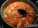 Опять на помидоры добавим 2 ст. ложки соевого соуса Киккоман и дадим немного пропитаться, пока духовка нагревается