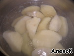 Картофель почистить и отварить до готовности в небольшом количестве подсоленной воды.