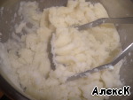 Слить воду и размять картофель. Влить молоко и положить масло, взбить до получения пышного пюре, приправить мускатным орехом, перцем. Можно добавить немного измельченной петрушки.