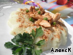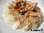 Смазать маслом форму в виде кольца и посыпать нарубленными грецкими орехами. Положить теплое пюре в форму и слегка прижать.
