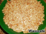 Ядрышки орехов немного подсушить в духовке и измельчить на блендере, либо при помощи ножа (ручками)).