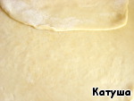P.S.: Хочу ещё сказать немного про муку, вернее, о её количестве при раскатке. Используйте её чуть-чуть, чтобы только не прилипало к столу и скалке. Мне обычно хватает рукой протереть скалку и чуть припорошить стол. Чуть больше муки может понадобиться на первую раскатку теста. Но смотрите, чтобы к столу не прилипло, а если и прорвётся тесто, не расстраивайтесь - можно сделать заплатку или просто присыпать мукой. Главное, раскатывайте тесто медленно, не спеша, чтобы не порвать и не сбить слои - его нужно почувствовать. Вы с первого раза поймёте, что ему нужно и последующие разы уже всё делается быстро.