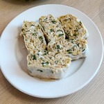 2 лаваш - яйца отварить, натереть на крупной терке, поперчить, смешать с майонезом. Выложить на второй лаваш. Сверху накрыть третьим лавашом.