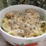 [+5]Получилась вкусная сытная паста. У меня оставалось пельменное тесто и я из него сделала лапшу.