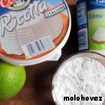 Протертый творог (не жидкий) или, как у меня на фото, рикотту, смешать с сахарной пудрой, сметаной и соком лимона.