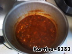 Косточку достать и срезать с нее мясо, мелко нарезать и добавить к фасоли. В двух стаканах бульона от косточки развести 3 ложки томатной пасты, соль, сахар, паприку и чили и залить фасоль.Чеснок мелко порубить и отправить туда же.