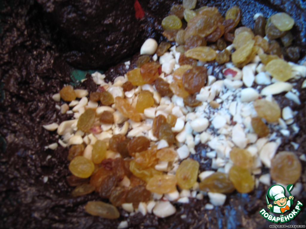 Затем добавляем любимые наполнители, это могут быть орехи, изюм, вафельная крошка, кокосовая стружка, цукаты и проч., и проч...