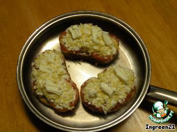 Я на каждый бутерброд положила несколько кусочков сливочного масла, чтоб сыр лучше расплавился. Делать это необязательно. Эту ступень можно пропустить.