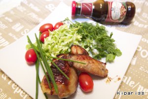 Под соусом Yakitori. Очень легкий и вполне доступный маринад! Мясо получается сочное с красивой и очень вкусной корочкой! Приготовить можно как на огнях так и в духовке, надеюсь, что всем понравится!