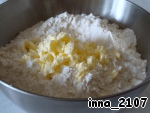 В чашке смешать просеянную муку с солью, добавить мелко нарезанное масло и растереть с мукой.