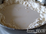 Свежие дрожжи растворить в молоке и влить их чашку с мукой. Добавить теплую воду. -