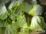 Также, соизмеримо с размерами кусочков сельдерея, нарезаем пекинскую капусту.