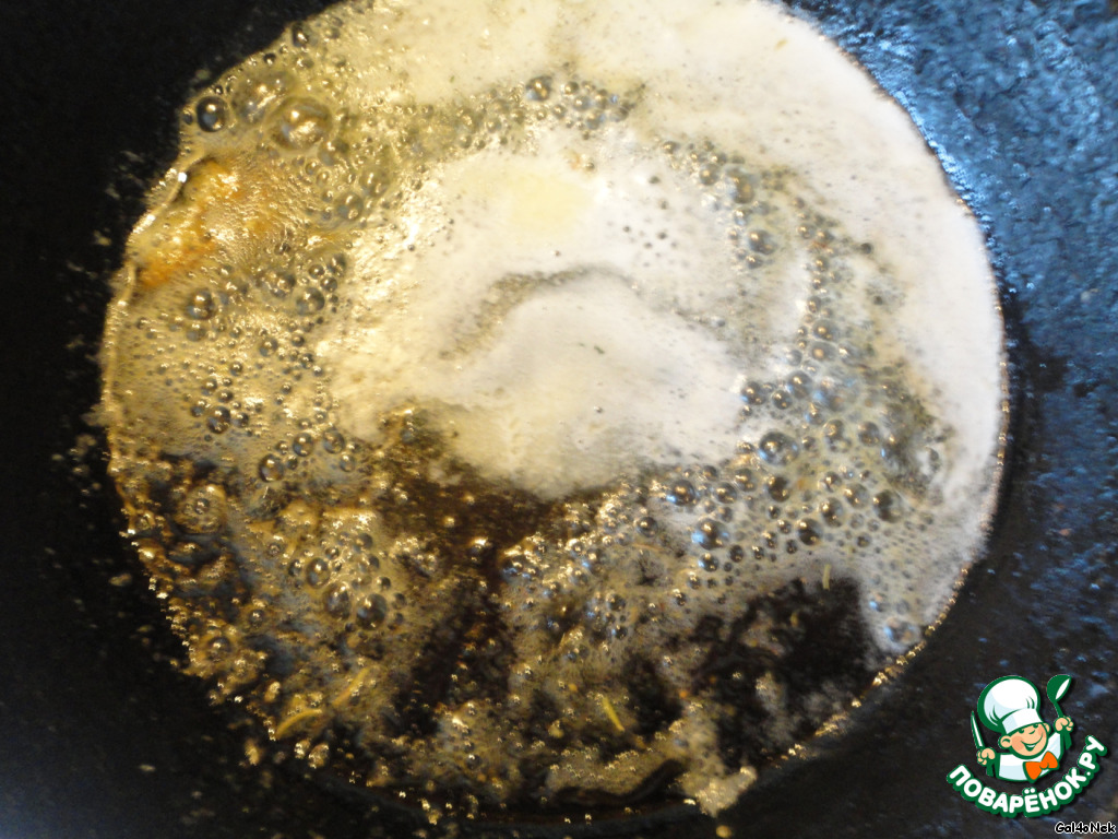 Хорошо разогреваем сковороду, растапливаем на ней сливочное масло.