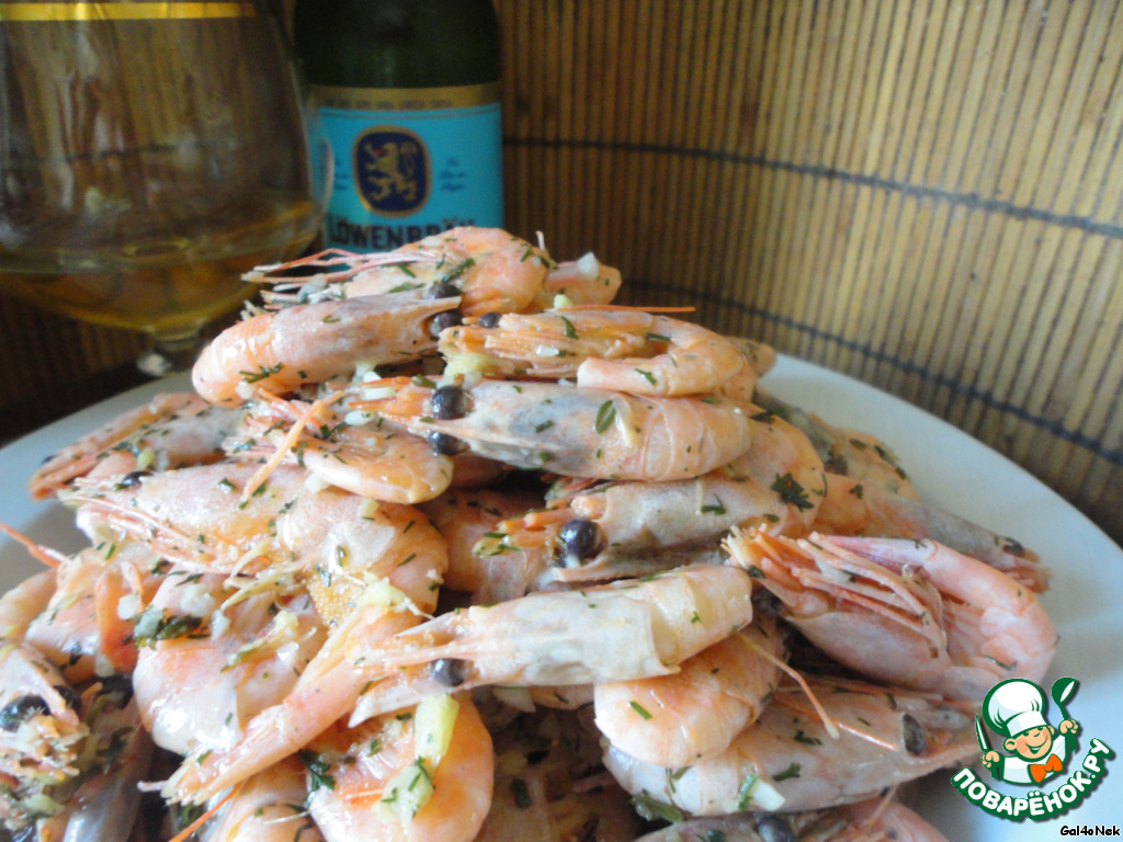 Очень нравятся мне креветки по этому рецепту. Они получаются очень нежными и ароматными. Дополнителную нежность придает сливочное масло. Попробуйте, Ваши пивоманы и не только оценят.