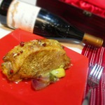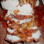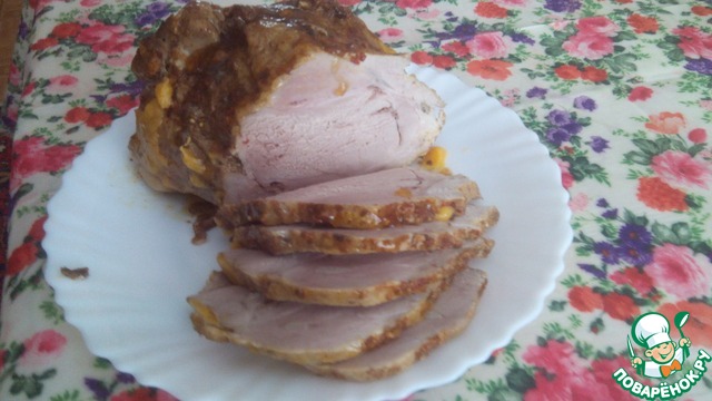 Поместите мясо на блюдо и нарежьте порционными кусочками, полейте их оставшимся от запекания соусом.