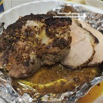 Накрыть мясо крышкой (если у вас форма с крышкой), если нет, то плотно закрыть фольгой. Запекать при 200 градусах 1 час, снять фольгу (крышку), уменьшить температуру до 160 градусов и запекать ещё 80 минут, постоянно поливая мясо выделившимся соком, обязательно сохраните немного маринада, он может вам понадобиться, чтобы подливать к мясу во время запекания.