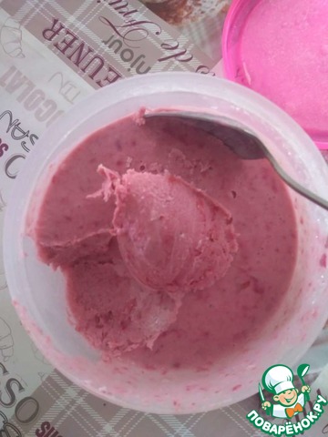 Девочки, поздравляю всех с Первомаем! Честно пересмотрела все 12 страниц рецептов мороженого и такого не нашла. Рецепт родился случайно, вчера обнаружила на даче в морозилке огромный запас мороженой ягоды, нужно срочно освобождать место, ведь свежие ягодки уже на подходе! В такую жару, как у нас сейчас, пироги печь не хочется, а вот мороженое - с удовольствием! Получилось вкуснейшее, умеренно сладкое мороженое с легкой кислинкой. Консистенция у мороженого очень приятная, оно не дубеет в морозилке, а главное - делается так быстро!
