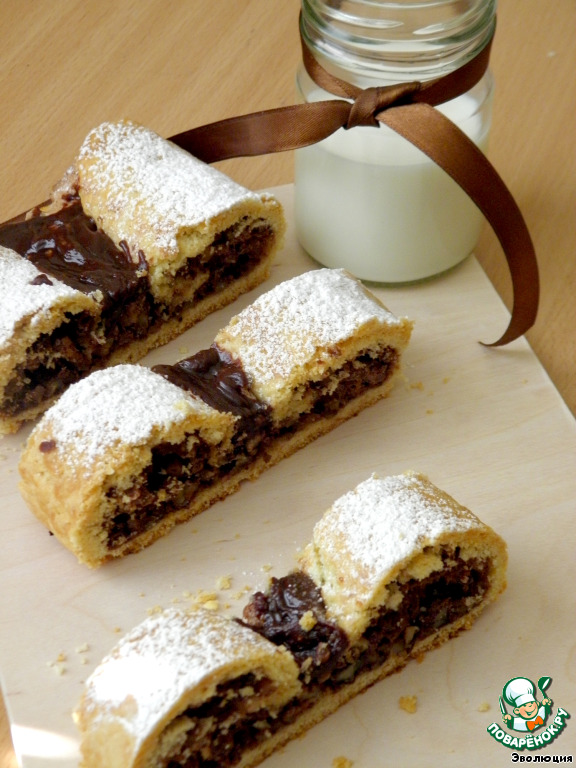 Я выложила начинку слишком толстым слоем, поэтому внутри получилось мало завитков. Но не думаю, что вкус пострадал. Очень вкусное печенье из доступных продуктов! |
