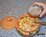Переложить все в горшочек, залить пивом (количество пива, указанное в рецепте, весьма условно, если капуста сильно отжата и ужарилась, добавьте больше, если влаги достаточно, то добавляйте по норме) и поставить в духовку на 40 минут. Если у вас больше объем блюда, то и держать в духовке надо подольше. Затем выключаю и еще минут 20 даю постоять в горячей духовке.